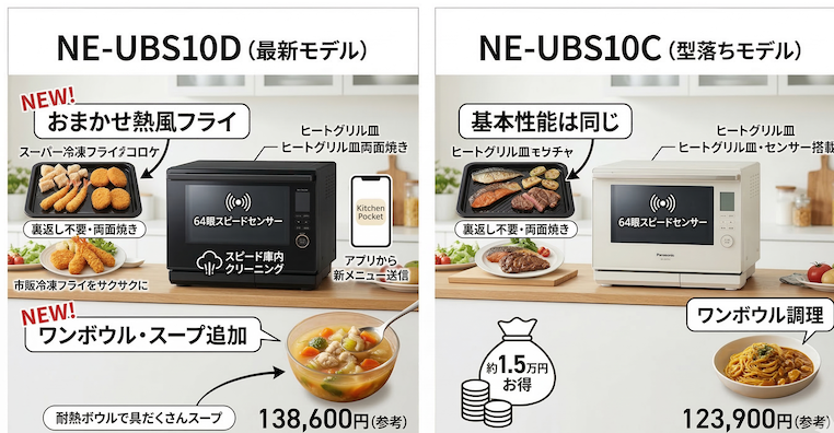 - 最新モデルのNE-UBS10Dと型落ちのNE-UBS10C、どっちを選べばいいの?